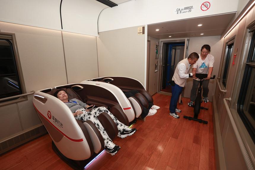 為提升出行體驗,哈爾濱局集團公司對列車硬件設施進行全方位適老化改造,是我國首個配備專屬“智慧健康屋”的旅客列車。健康屋內配置有脊柱專家理療床、智能生物能量儀、AI健康篩查儀等專業康養設備,全方位保障旅客健康安全。